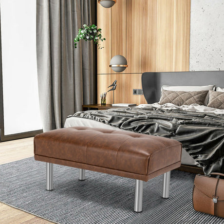Rectangle Tufted Ottoman with Stainless Steel Legs for Living Room-Brown