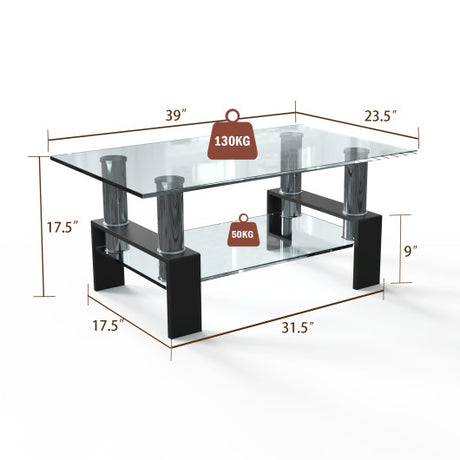 Rectangle Glass Coffee Table with Metal Legs for Living Room-Black