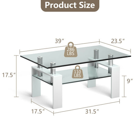 Rectangle Glass Coffee Table with Metal Legs for Living Room-White