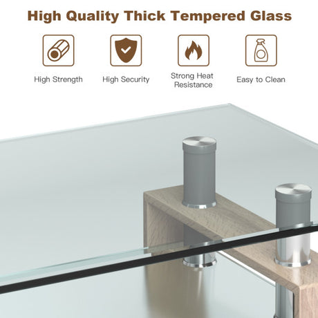 Rectangle Glass Coffee Table with Metal Legs for Living Room-Natural