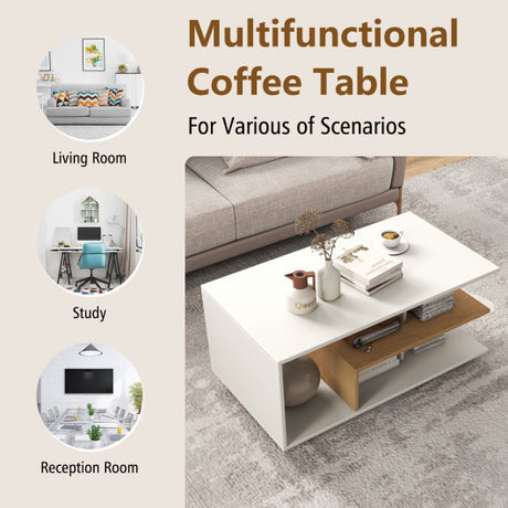Rectangular Coffee Table with L-shaped Middle Shelf-White