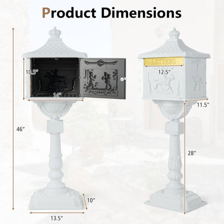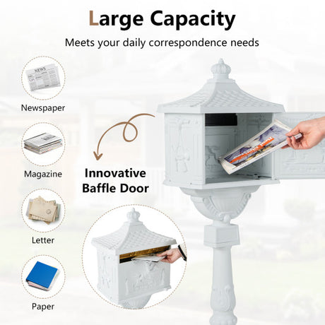 Retro Cast Aluminum Mailbox Security Postal Letter Box with Baffle Door-White