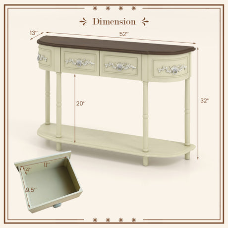 Retro Curved Console Table with Drawers and Solid Wood Legs-Beige