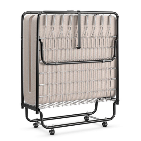 Rollaway Guest Bed with Sturdy Steel Frame and Memory Foam Mattress Made in Italy-Beige