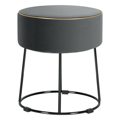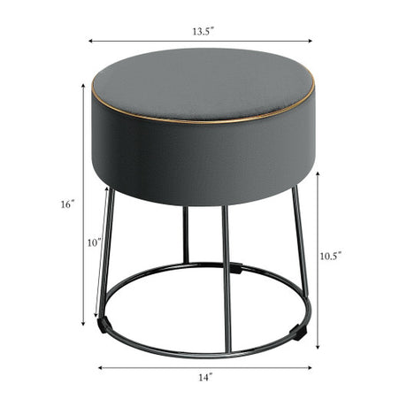 Round Velvet Storage Ottoman Footrest Stool Vanity Chair with Metal Legs-Gray