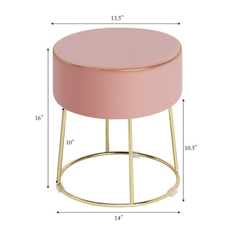 Round Velvet Storage Ottoman Footrest Stool Vanity Chair with Metal Legs-Pink