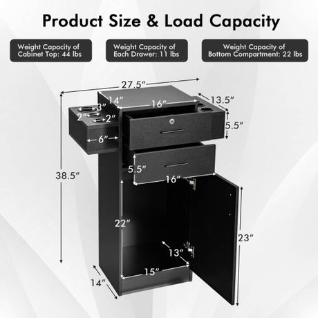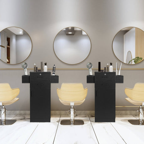 Salon Station Storage Cabinet with 6 Hair Dryer Holders for Hair Stylist-Black