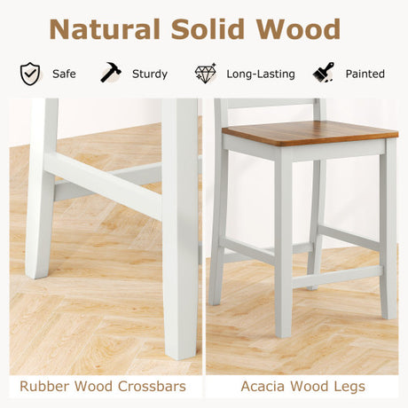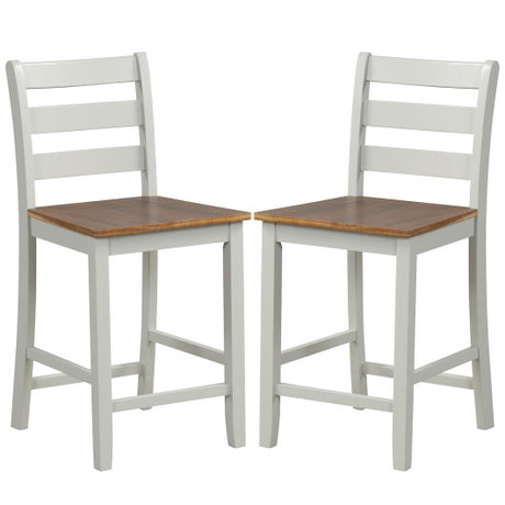 Set of 2 Counter Bar Stool with Inclined Backrest and Footrest-Gray