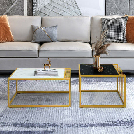 Set of 2 Nesting Coffee Table with Extra Storage Shelf for Living Room-Golden