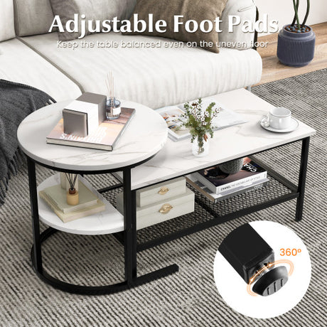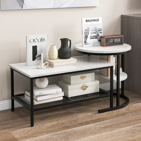 Set of 2 Modern Stackable 31.5 Inch Side Table with Waterproof Faux Marble Tabletop