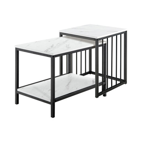 Set of 2 Nesting End Tables with Storage Shelf-White