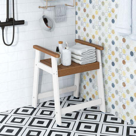 Shower Bench with Arms for Inside Shower Shaving Legs-Brown