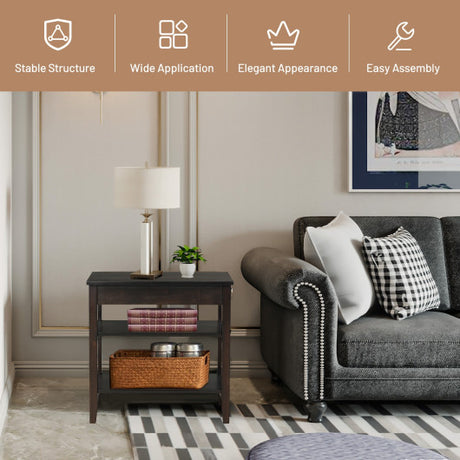 Side End Table with Drawer and 2-Tier Open Storage Shelves for Space Saving-Black