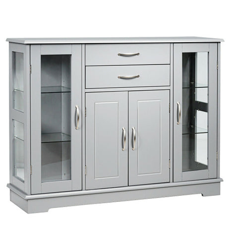 Sideboard Buffet Server Storage Cabinet with 2 Drawers and Glass Doors-Gray
