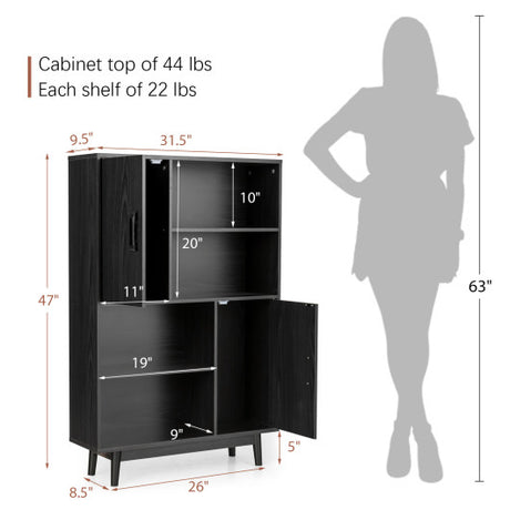Sideboard Buffet Cupboard Storage Cabinet with Sliding Door-Gray
