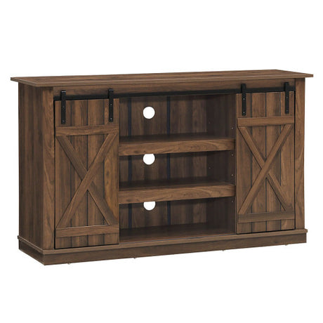 Sliding Barn Door TV Stand with Adjustable Shelf Cabinet-Dark Walnut