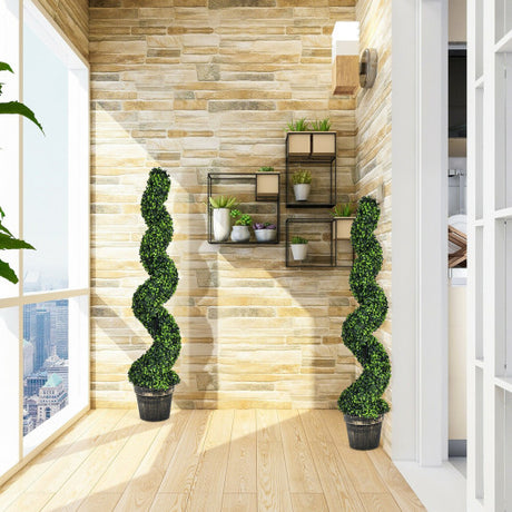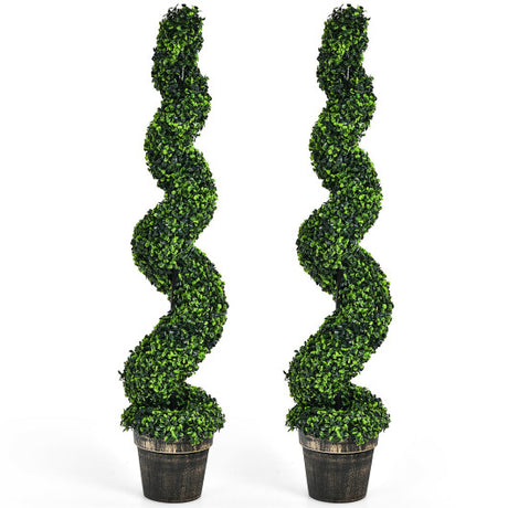 2 Pack 4 Feet Artificial Spiral Boxwood Topiary Indoor Outdoor Decor