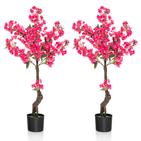 2 Pack 41 Inch Artificial Plum Blossom Tree Fake Floral Plant with 92 Flowers-Red