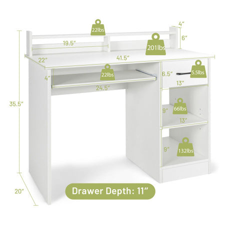 Study Laptop Table with Drawer and Keyboard Tray-White