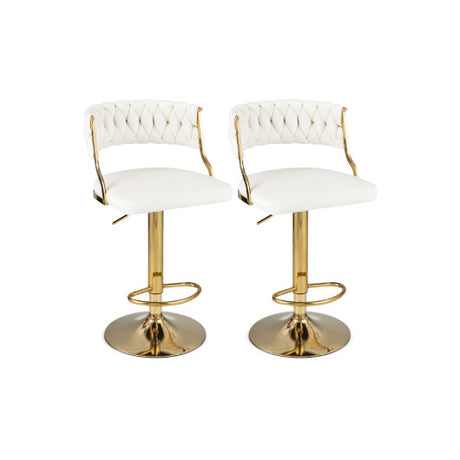 Swivel Barstool with Woven Back Set of 2 for Kitchen Island Cafe-White