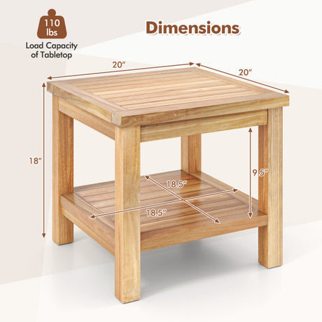 Teak Wood Square Side Table with Open Shelf for Small Space
