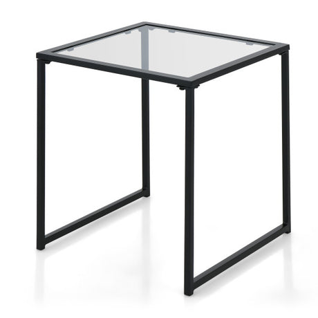 Tempered Glass Side Table with Metal Frame for Indoor and Outdoor