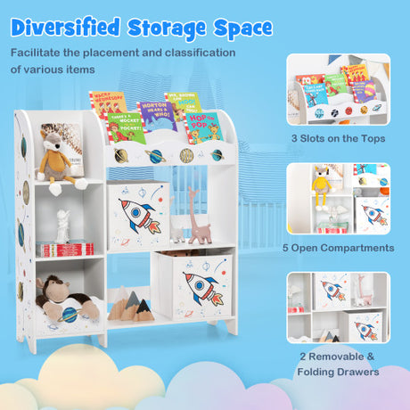 Wooden Children Storage Cabinet with Storage Bins-Rocket Pattern