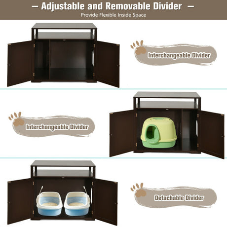 Wooden Cat Litter Box Enclosure Hidden Cat Washroom with Storage Layer-Brown