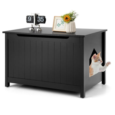 Wooden Cat Litter Box Enclosure with Top Opening Side Table-Black