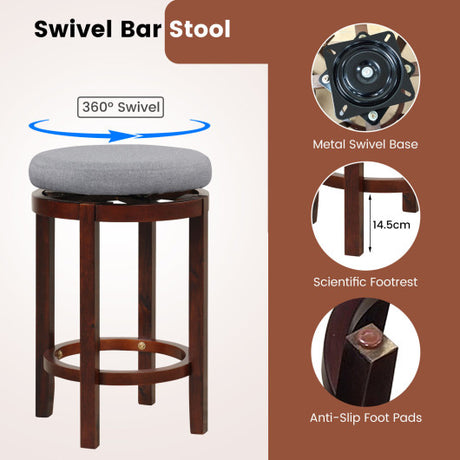 2 Pieces 29 Inch Pub Height Swivel Upholstered Bar Stools with Wood Legs-29 inches