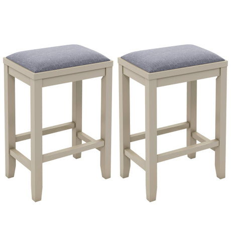 2 Pieces 25 Inch Upholstered Bar Stool Set with Solid Rubber Wood Frame and Footrest-Griege
