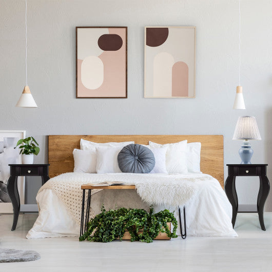 2-Tier End Table with Drawer and Shelf for Living Room Bedroom-Black