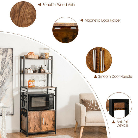 4-Tier Industrial Kitchen Bakers Rack Microwave Oven Stand-Brown