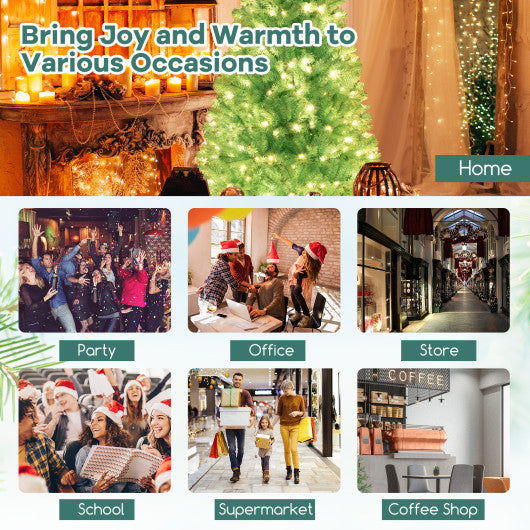 ● Pre-Lit Design: This lighted Xmas tree is equipped with 280/380 warm white LED lights that are evenly distributed throughout the tree creating a cozy and festive ambiance in your home. It adopts a safe UL-certified adapter and UL588-certified lights for security.