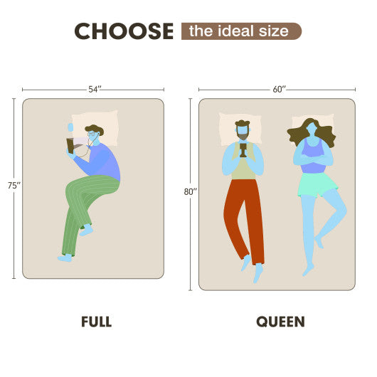 - Dimension of queen size mattress: 80" x 60" x 8" (L x W x H)