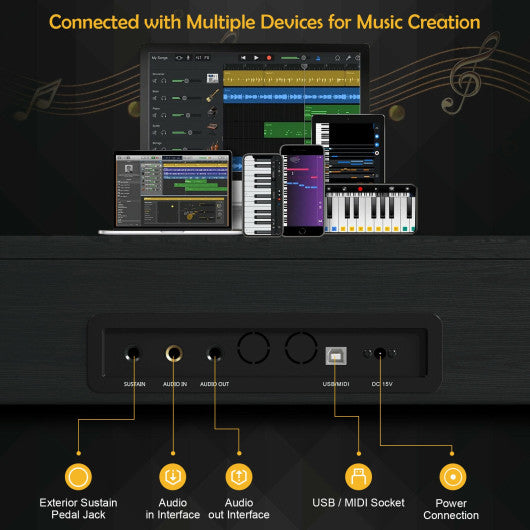 - 88 semi-weighted keys to quickly and meticulously reflect every change of the touch