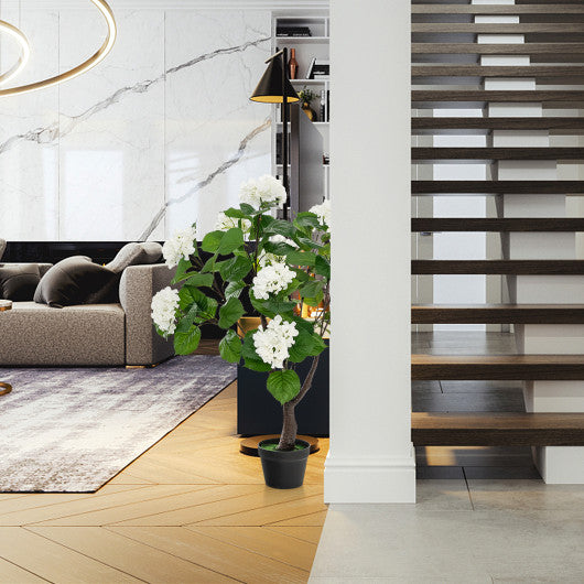 Artificial Hydrangea Tree Fake Floral Plant with 11 White Flowers-White - White is backordered and will ship as soon as it is back in stock.
