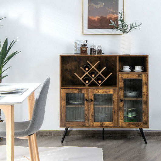 Buffet Kitchen Storage Cupboard with Glass Door and Adjustable Shelves-Rustic Brown