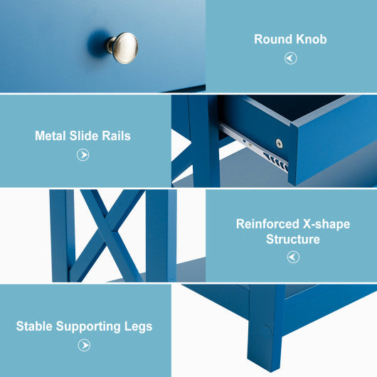 Console Table 3-Tier with Drawer and Storage Shelves-Blue