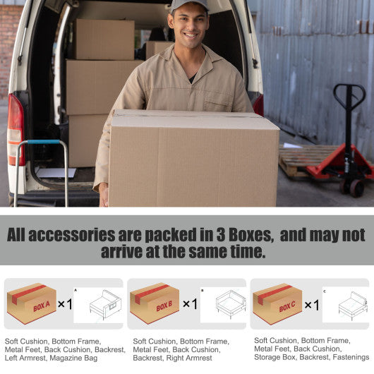 Convertible Leather Sofa Couch with Magazine Pockets 3-Seat with 2 USB Port-Light Gray - Light Gray is backordered and will ship as soon as it is back in stock.