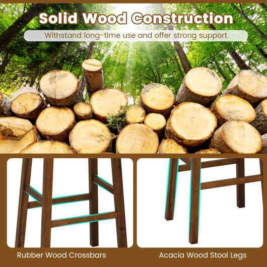 ● Solid Wood Construction: The bar stools feature rubber wood crossbars and acacia wood stool legs which are natural and burr-free. Such a high-grade wood frame will withstand long-time use and offer strong support.
