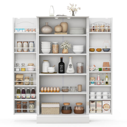● Sleek Appearance and Wide Application: This pantry storage cabinet combine white finish and elegant smooth lines as one which makes a modern and fashion addition to your home decoration. It can be widely used in kitchen dining room and living room break rooms etc.
