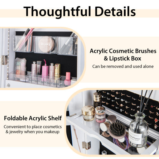 Freestanding Jewelry Cabinet with Full-Length Mirror-White