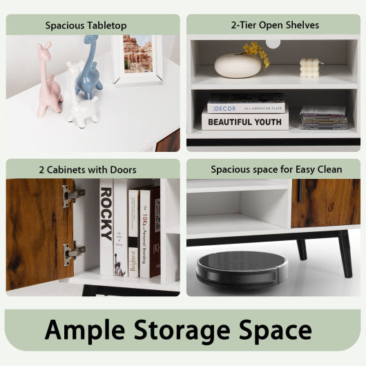 Mid-Century Wood TV Stand for 55 Inch with 2 Cabinets and Open Shelves