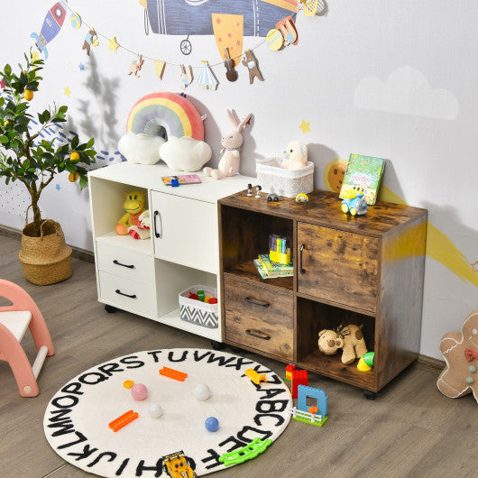 Have you found a favored storage cabinet to own a tidy and clean room? Composed of durable engineered wood the cabinet is sturdy and reliable for a long service time. Designed with various storage spaces this office cabinet keeps your daily essentials and displays decorations well-organized. Equipped with smooth-rolling wheels the storage cabinet is convenient to move anywhere you like. This printer stand combines both fashion and versatility to create a classic home furnishing that is suitable for office bedroom living room or any other space.