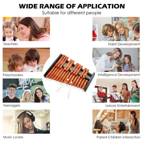 25 Notes Xylophone Wooden Percussion Educational Instrument with 2 Mallets