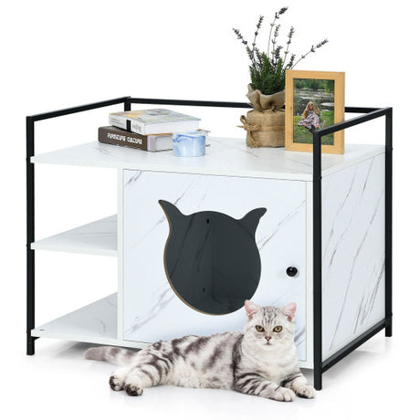 Enclosure Hidden Litter Furniture Cabinet with 2-Tier Storage Shelf-White
