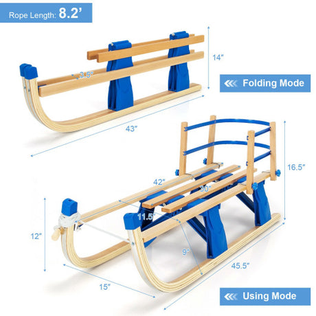 Folding Snowsled Portable Steering Slider with Pulling Ropes and Metal Rails