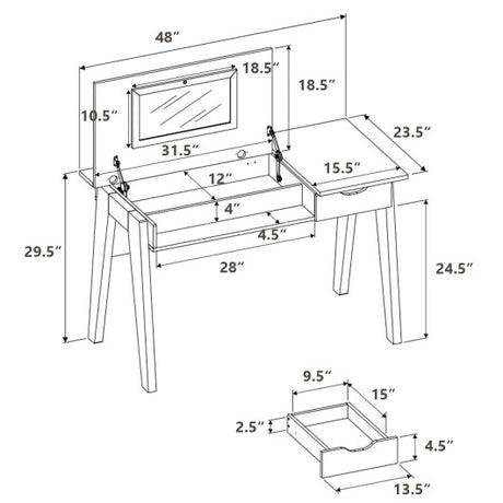 Makeup Vanity Table Set with Flip Top Mirror and 2 Drawers-White