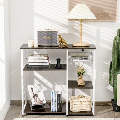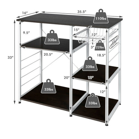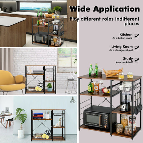 Industrial Kitchen Baker's Rack Microwave Shelf with 6 Hooks-Dark Brown